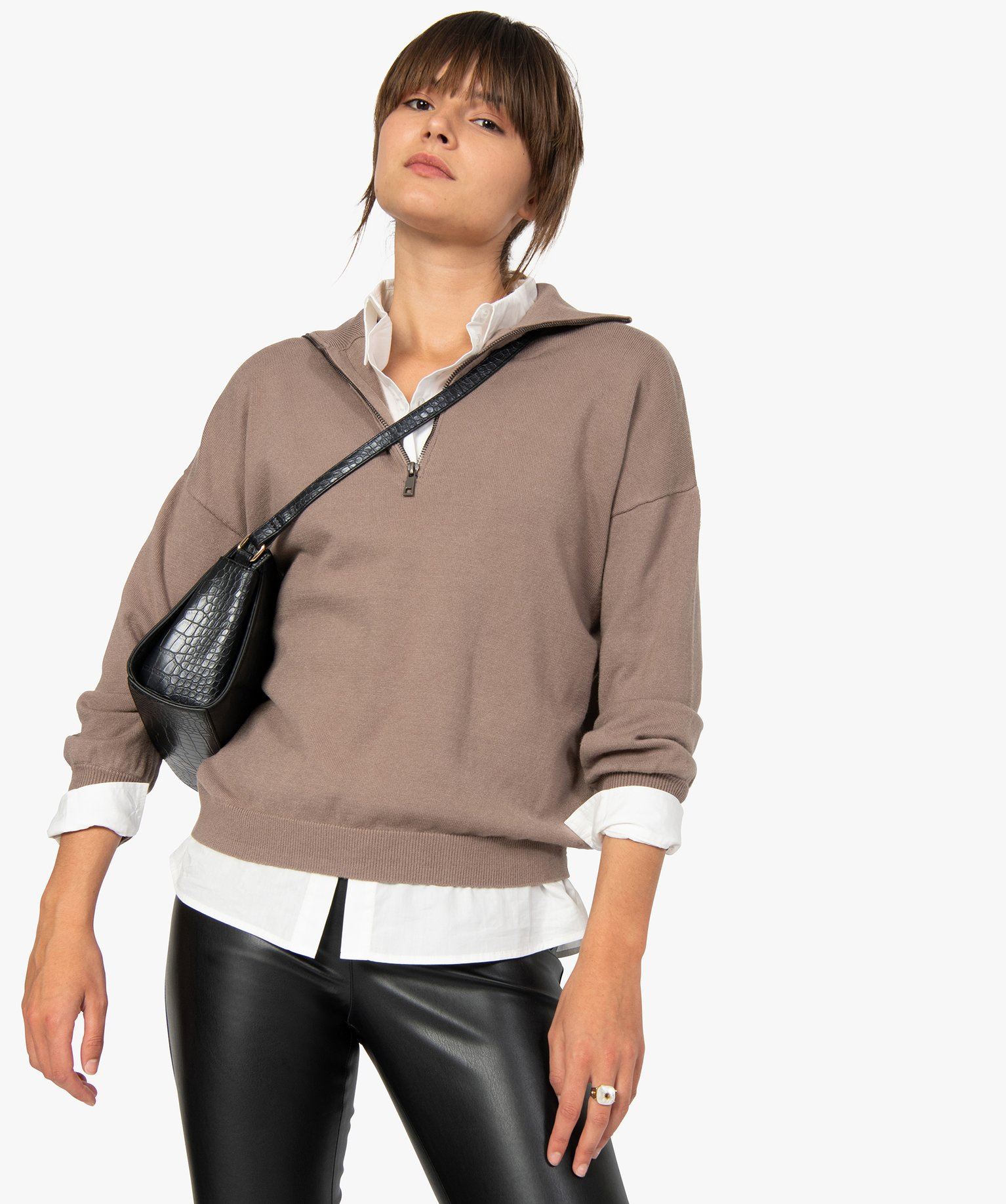 pull femme doux a col camionneur zippe brun pulls femme | GÉMO