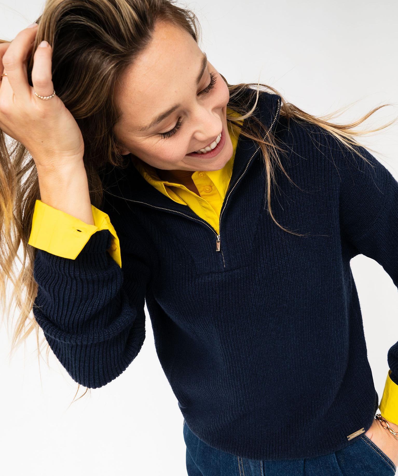 Pull camionneur à col zippé femme LuluCastagnette bleu | GEMO