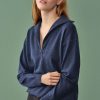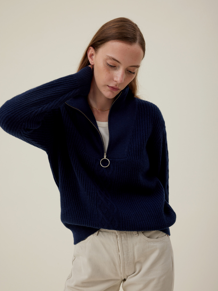 Kayla Pull camionneur grosse maille en cachemire navy pour femme