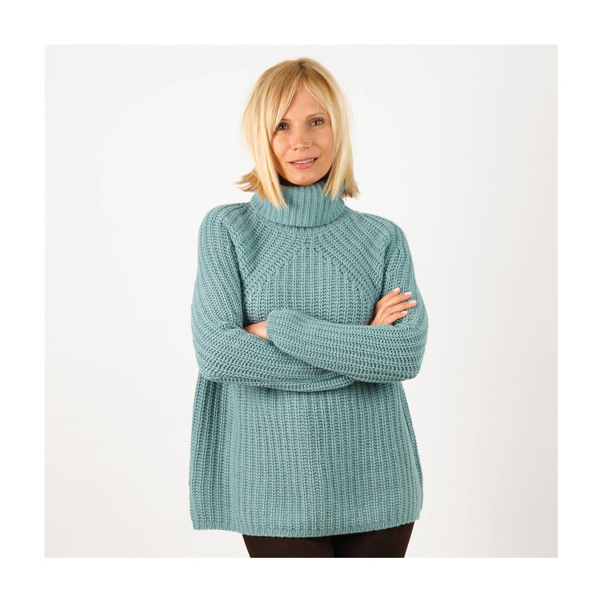 Pull col roulé cashmere manches raglan vert céladon AALLARD de Megève