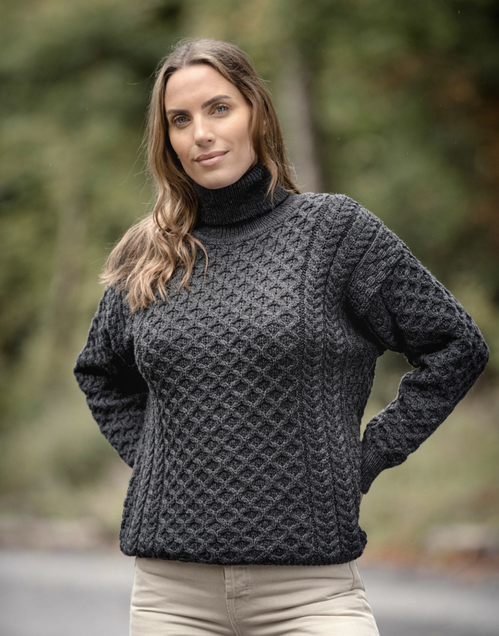 Pull traditionnel irlandais col roulé chaud laine mérinos mixte Aran Crafts