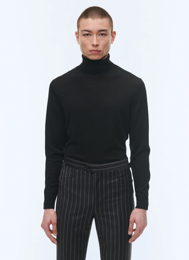 Pull Col Roulé Noir Laine Mérinos Homme Fursac A2OROL MA03 20