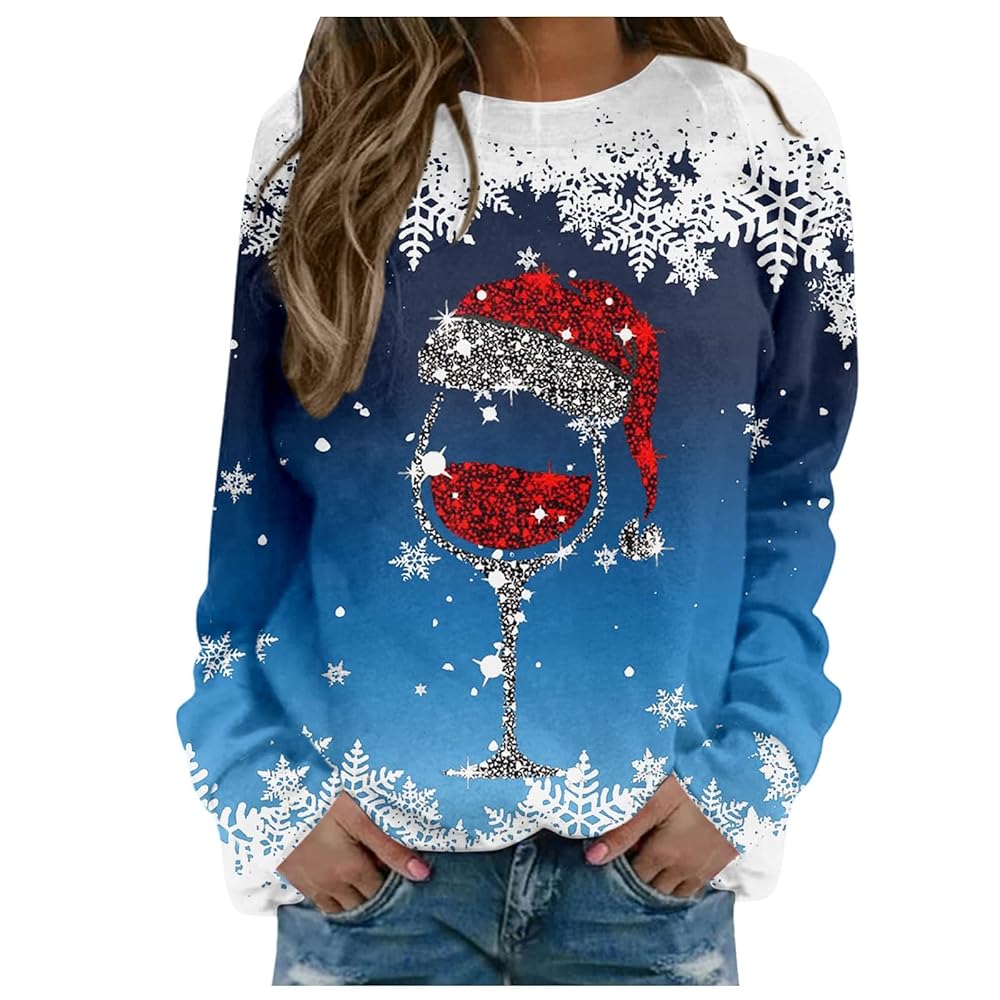 Pull de Noel Femme Rigolo Pull Moche de Noel Femme Pull de Noël Chic Sweat Noel Femme Ugly Christmas Pull Noel Drole Sweat Polar Femme Invierno Cálido Sudadera Manga Larga Pullover, azul