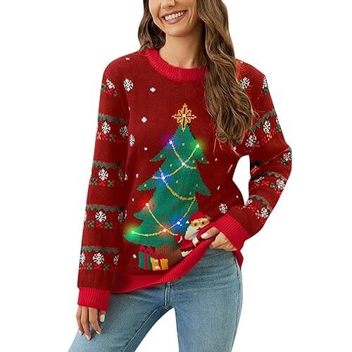 Noël Femme Pull De Noel Musical Sapin Pull Noel Kitch Sapin Pull Moche Noel Femme Sapin