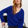 Jersey de cachemir de manga larga y cuello en V azul MUJER | Majestic Filatures – MAJESTIC FILATURES