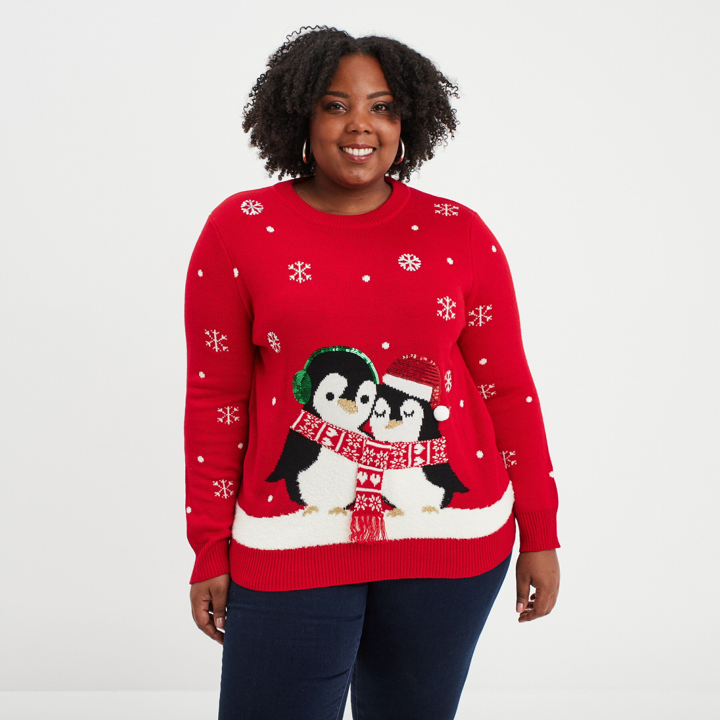 Pull Noël manches longues à sequins rouge femme grande taille | La Halle