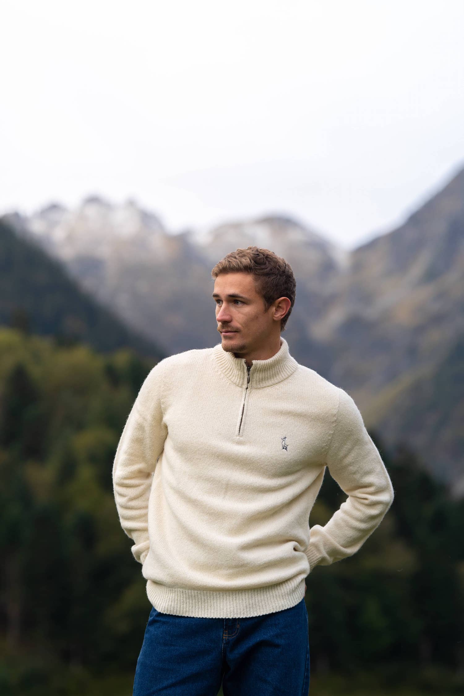 Pull Camionneur Laine Blanc Ecru Homme Maison Izard