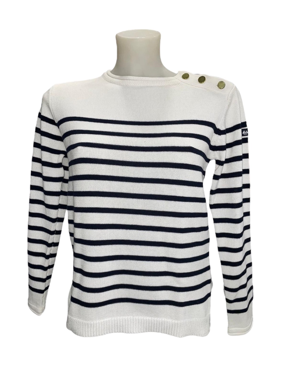 Pull Marin femme col rond et rayures marine/écru/thé EVASION