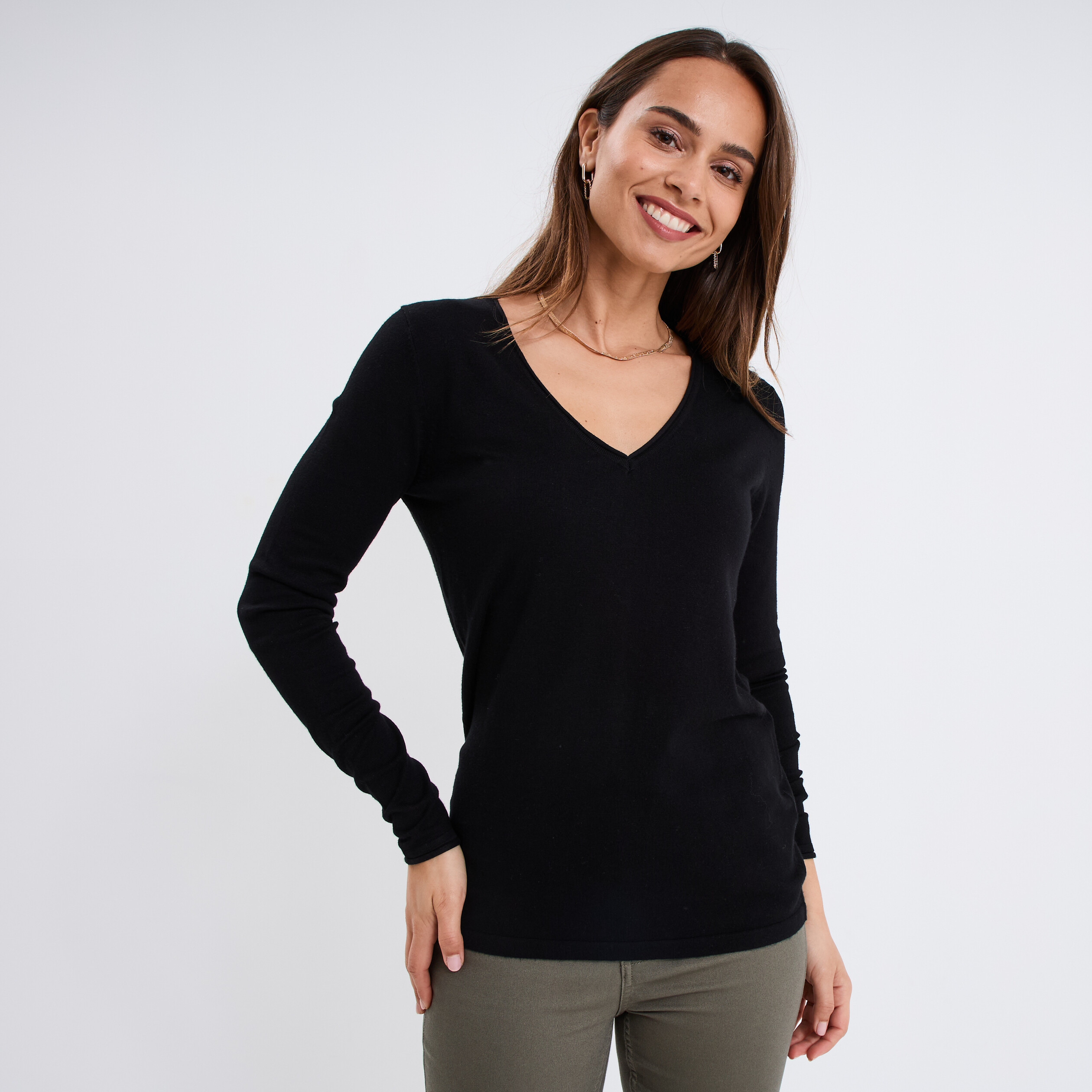 Pull Noir Pull Femme De Qualité Pull Ajusté Avec Col En V Noir Femme