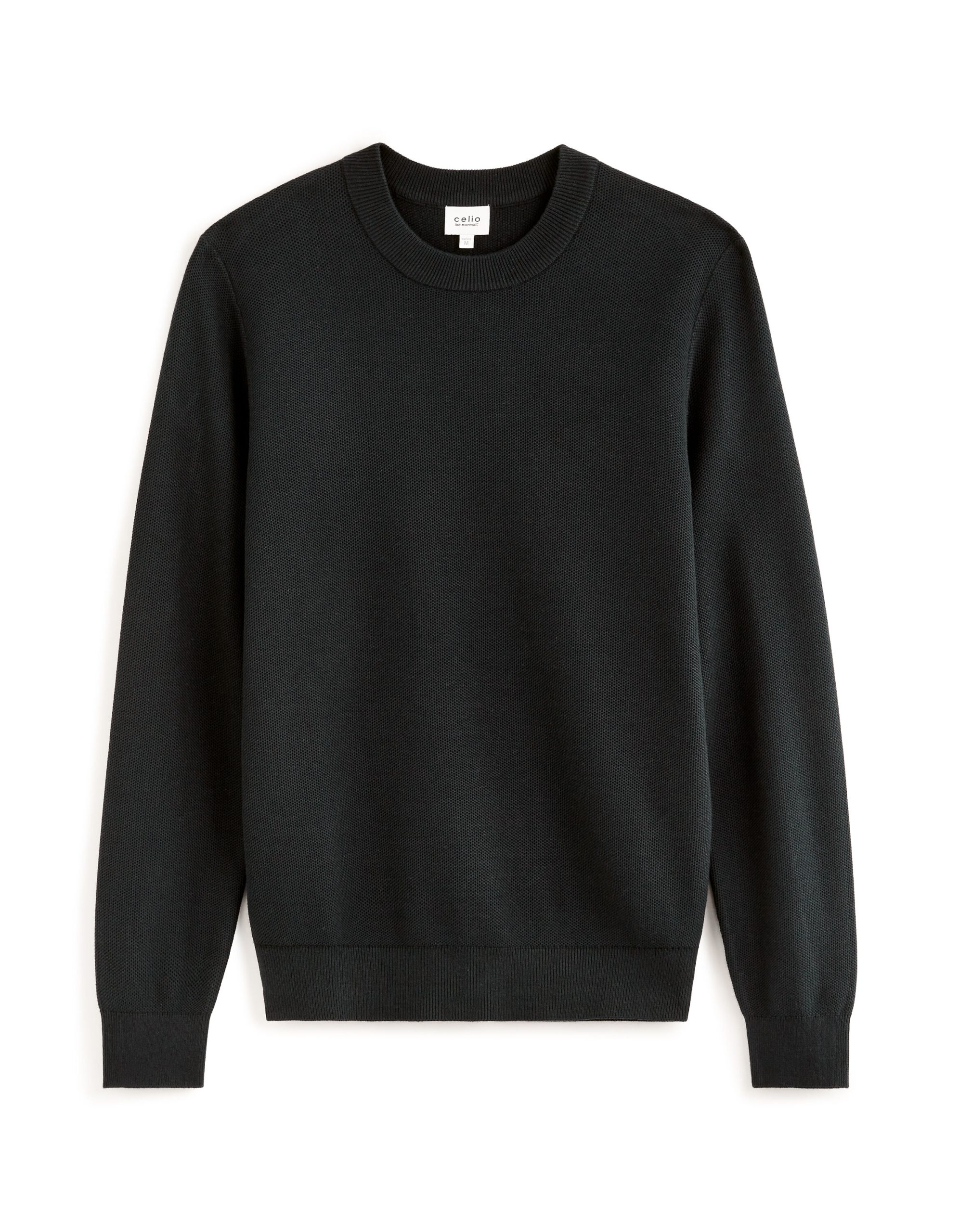 Suéter de cuello redondo de piqué 100 % algodón negro | celio be normal