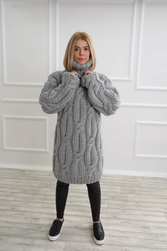 Pull Oversize Femme Gros Pull Chaud Pull Gris Pull Grosse Maille Laine Femme Pull Femme Grosse